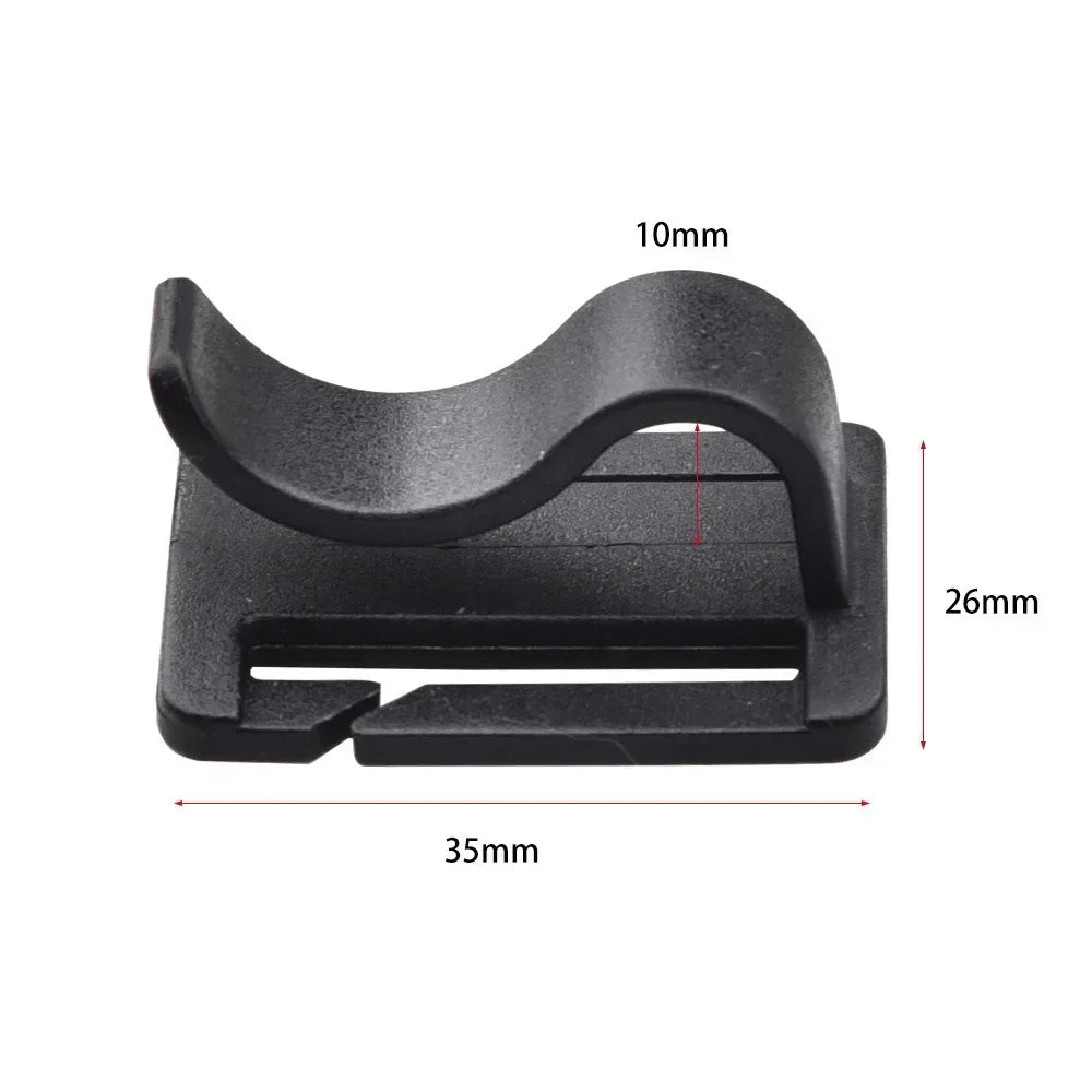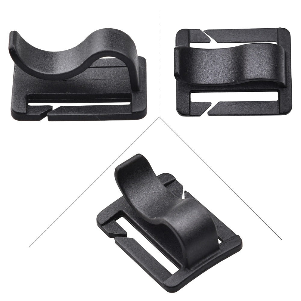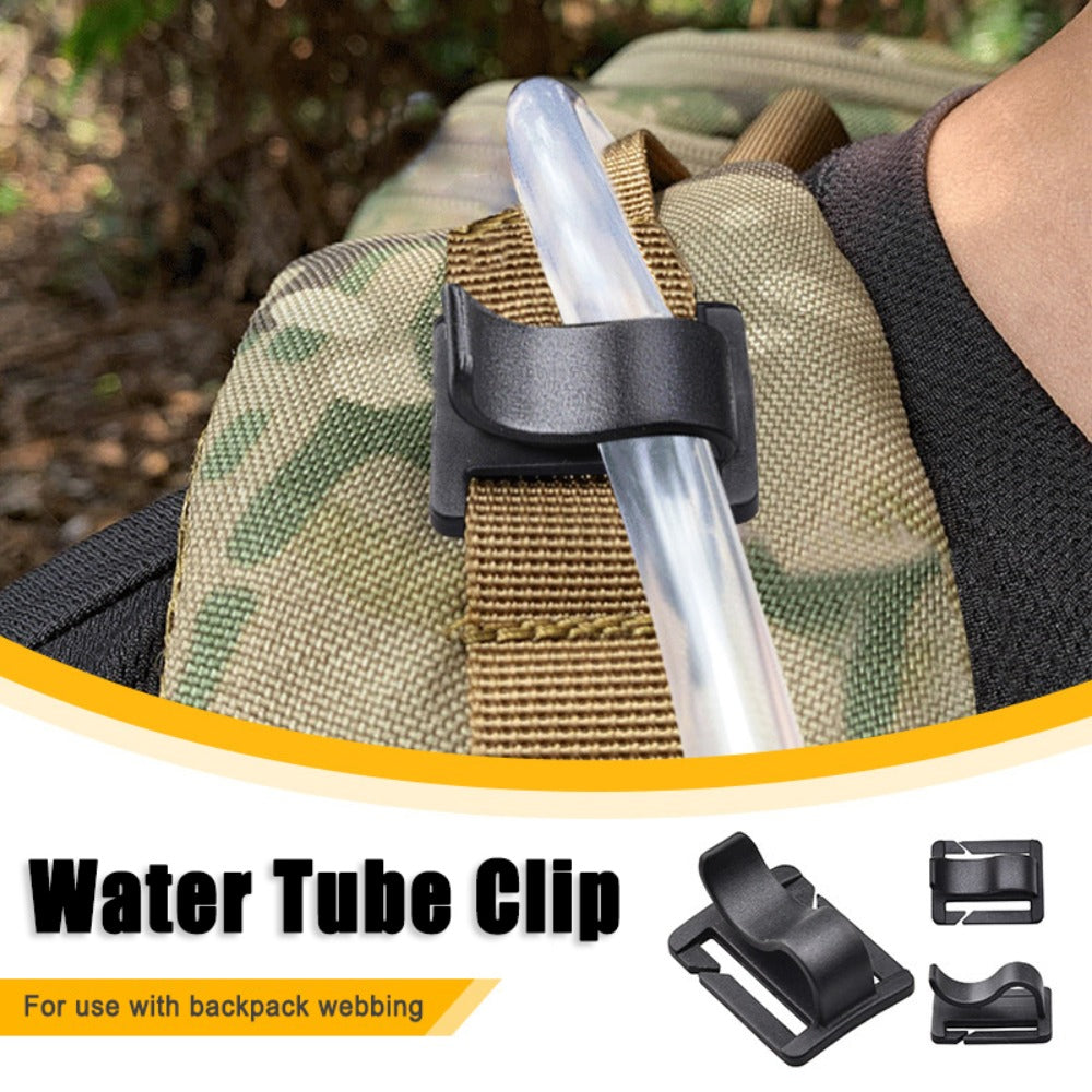 Fix your tube drinking tube wires to your bags. Adjusts to 8 different fixed positions, the tube holder can rotate 360. It can be used with 18mm and 25mm webbing strap. for Tube Diameter: About 8-10 mm.